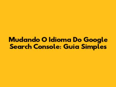 Mudando O Idioma Do Google Search Console: Guia Simples