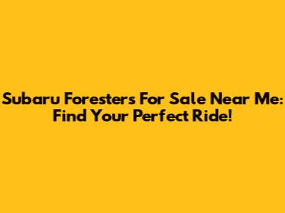 Subaru Foresters For Sale Near Me: Find Your Perfect Ride!