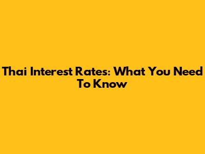 Thai Interest Rates: What You Need To Know