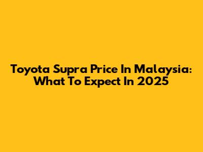 Toyota Supra Price In Malaysia: What To Expect In 2025
