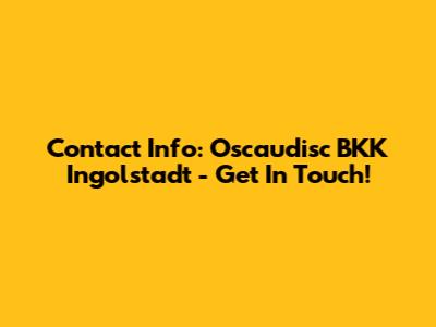 Contact Info: Oscaudisc BKK Ingolstadt - Get In Touch!