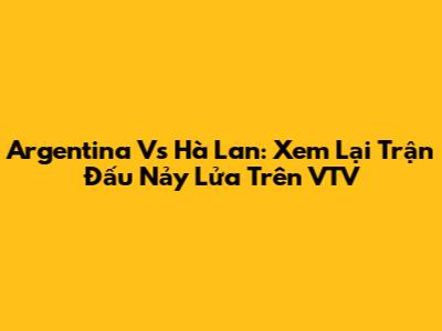 Argentina Vs Hà Lan: Xem Lại Trận Đấu Nảy Lửa Trên VTV