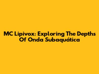 MC Lipivox: Exploring The Depths Of 'Onda Subaquática'