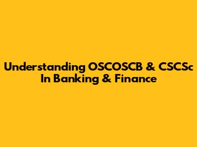 Understanding OSCOSCB & CSCSc In Banking & Finance