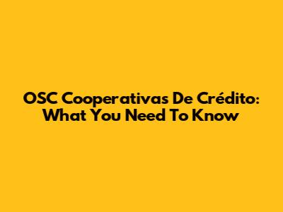 OSC Cooperativas De Crédito: What You Need To Know