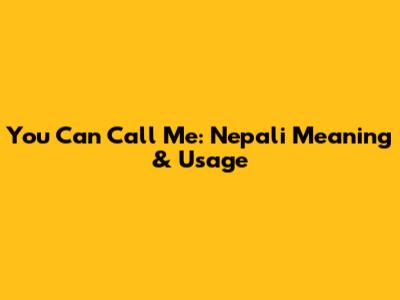 You Can Call Me: Nepali Meaning & Usage