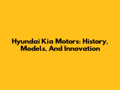 Hyundai Kia Motors: History, Models, And Innovation