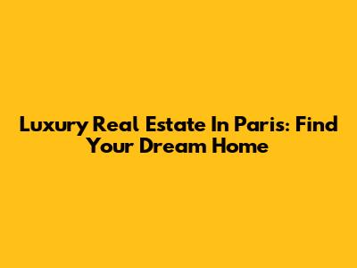 Luxury Real Estate In Paris: Find Your Dream Home