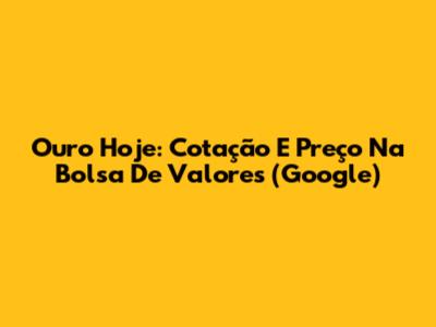 Ouro Hoje: Cotação E Preço Na Bolsa De Valores (Google)