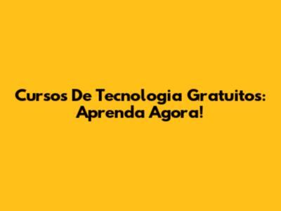 Cursos De Tecnologia Gratuitos: Aprenda Agora!